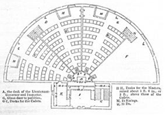 در سال ۱۷۹۷ ساموئل کارگاهی را برای گدایان طراحی کرد. شکل زیر نقشه نما و مقطع این کارگاه را نشان می دهد. همانطور که مشاهده می شود ساختمان از یک استوانه ۱۲ وجهی در ۵ طبقه تشکیل شده است که حلقه های هم مرکزی در داخل آن قرار گرفته اند. افراد توسط سکوی واقع در حلقه مرکزی و فضای خالی میان آن و حلقه بیرونی مورد مراقبت و نظارت قرار می گیرند. بعد ها ادعا شد که ۲۵۰ تا از این کارگاه ها در سراسر بریتانیا ساخته شده است و ۲۰۰۰ نفر در آن جا داده شده اند.