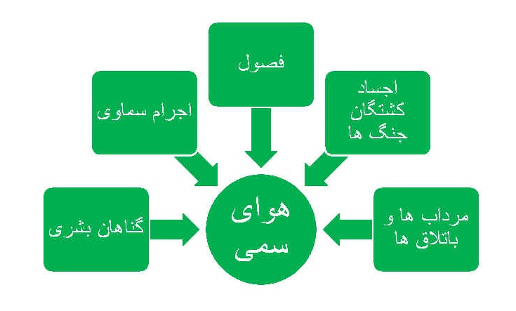 - هوای سمی تولید شده توسط جنازه های به جا مانده از جنگ ها